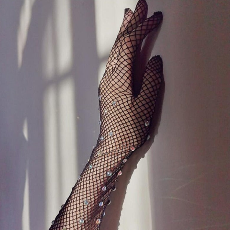 Długie rękawiczki ozdobione diamencikami to efektowny i elegancki dodatek na różne okazje. Wykonane z delikatnej siateczki sięgają do łokcia, dodając szyku i klasy. Zakryte palce zapewniają wygodę i ochronę. Zdobione diamencikami lśnią i przyciągają uwagę nadając dłoniom wyjątkowego blasku. Idealnie sprawdzą się na wieczorne wyjścia, bale, uroczystości czy wesela dodając stylu i elegancji każdej stylizacji. Ich siateczkowy materiał nadaje im lekkości i subtelności, a ozdobne diamenciki tworzą efektowny efekt. To niezwykle uniwersalny dodatek, który przyciąga wzrok i dodaje wyjątkowego uroku dłoniom.