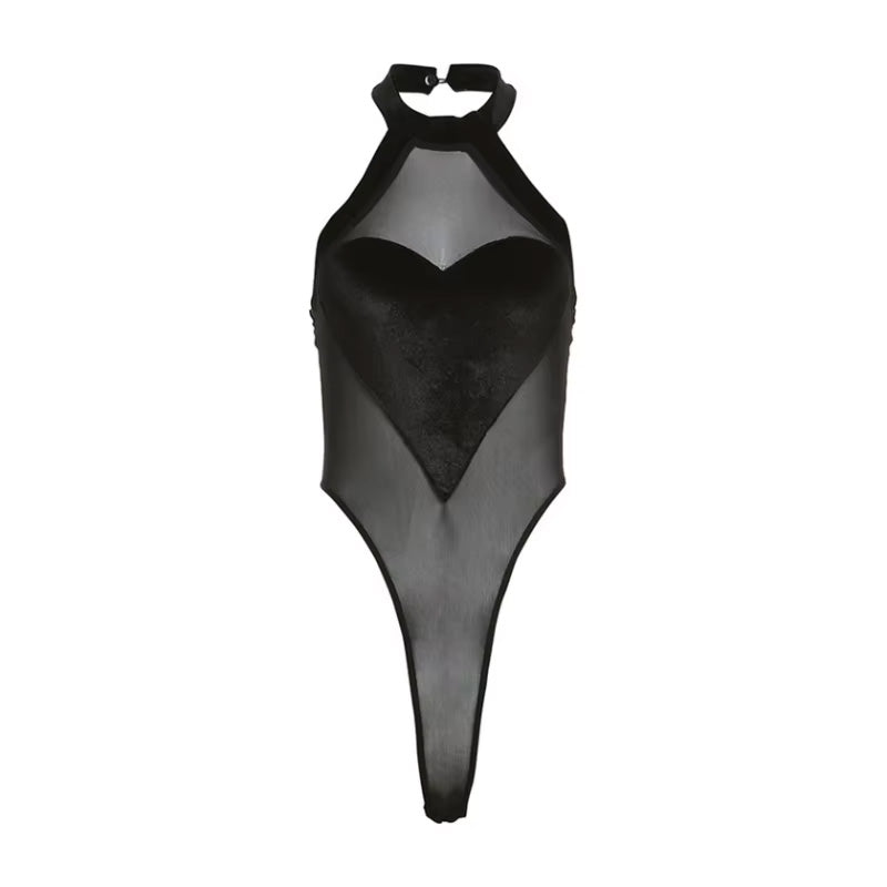 Body z siateczki i z welurowym sercem to idealne połączenie elegancji, zmysłowości i odważnego designu. Wykonany z lekkiego, prześwitującego materiału, subtelnie eksponuje sylwetkę, jednocześnie zachowując nutę tajemniczości. Centralnym punktem modelu jest welurowy motyw w kształcie serca, który efektownie podkreśla biust i dodaje całości kobiecego uroku.