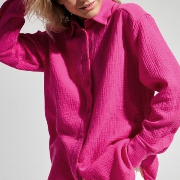 Muślinowa koszula to wszechstronny element garderoby, który możesz stylizować na wiele sposobów. Świetnie wygląda zarówno z jeansowymi szortami, jak i eleganckimi spodniami. Możesz ją nosić jako samodzielny top lub narzucić na strój kąpielowy.
