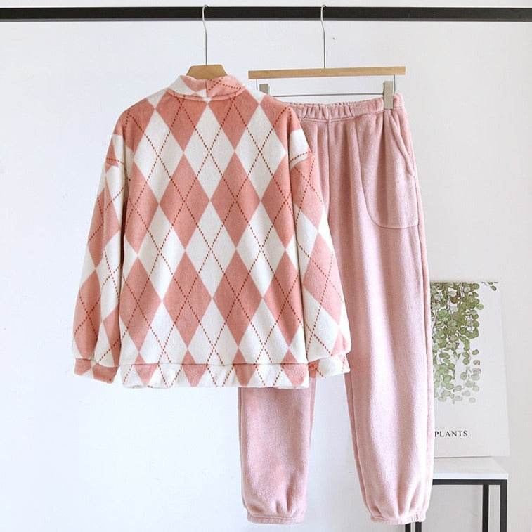 Domowy komplet polarowy w modną kratkę Argyle to wygodna i ciepła opcja na chłodne dni. Rozpinana bluza bez kaptura posiada długi rękaw i jest zapinana na wygodne guziki. Krata Argyle nadaje jej klasycznego i eleganckiego wyglądu. Spodnie w komplecie są jednolitego koloru, posiadają luźne nogawki i modne od wielu sezonów ściągacze na dole. Komplet polarowy w kratkę jest idealny do noszenia w domu podczas chwil relaksu zapewniając jednocześnie wygodę i styl.