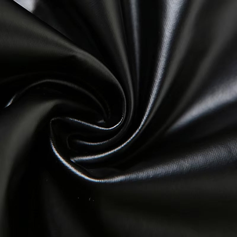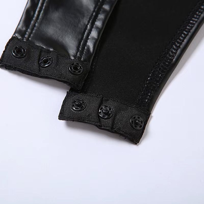 Eleganckie body damskie wykonane z materiału imitującego skórę, materiału o gładkim, lekko połyskującym wykończeniu. Idealna propozycja dla kobiet ceniących nowoczesny styl i wyrazistą formę. Dopasowany krój subtelnie podkreśla sylwetkę, modelując talię i akcentując kobiece kształty. Regulowane, cienkie ramiączka zapewniają komfort noszenia. Charakterystyczne wycięcie na dekolcie nadaje całości modnego, odważnego charakteru.