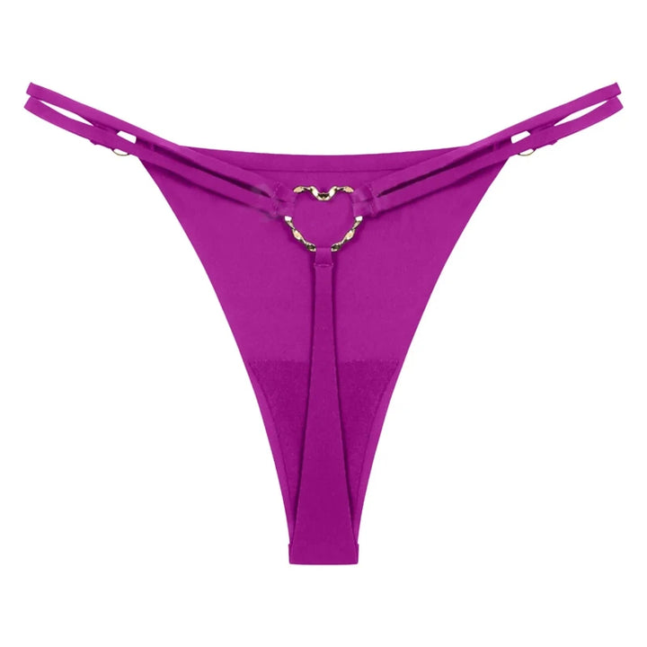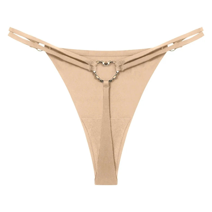 Gładkie stringi z paskami na biodrach i ozdobnym sercem z tyłu to zmysłowy i stylowy element bielizny, który łączy minimalizm z subtelnymi, uwodzicielskimi detalami. Majtki eksponują pośladki i podkreślają kształty sylwetki. Cienkie, elastyczne paseczki na biodrach dodają nowoczesnego charakteru, jednocześnie podkreślając talię.