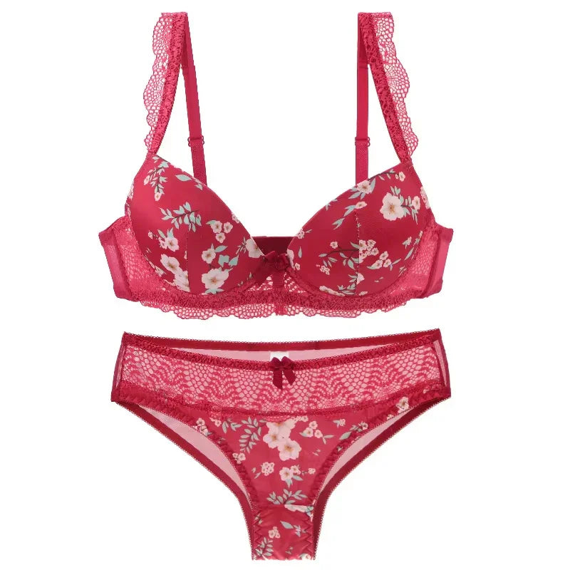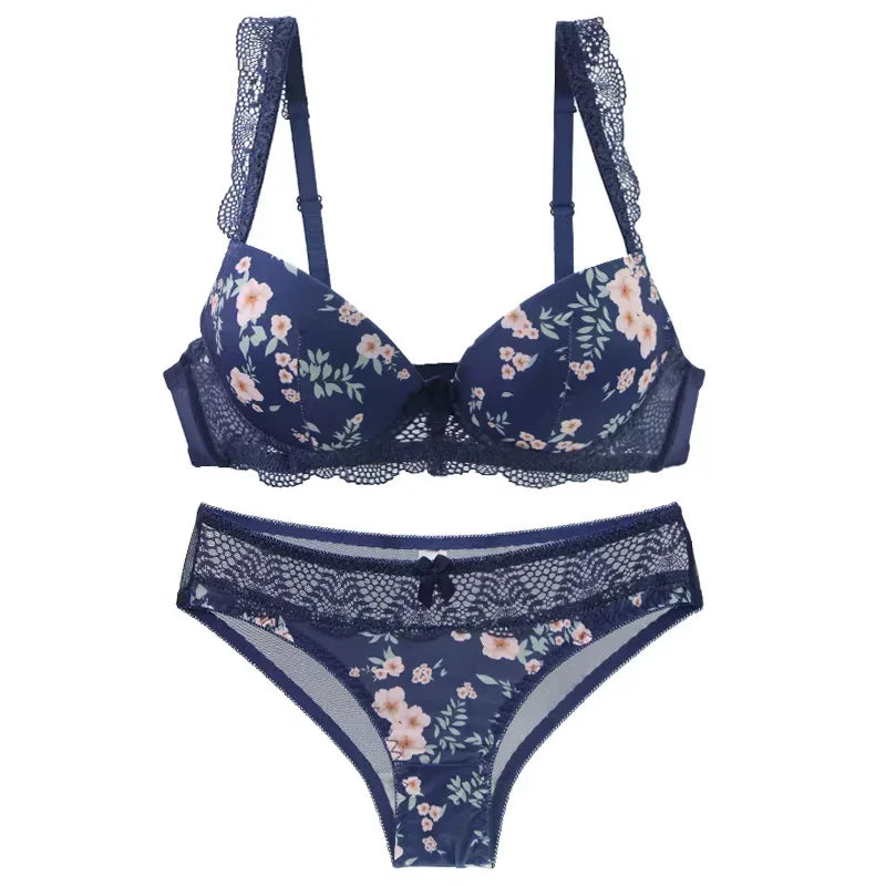 Niezwykle kobiecy komplet z kwiatowym motywem to idealny zestaw dla każdej kobiety. Koronkowe elementy znajdziemy również przy regulowanych ramiączkach biustonosza, które nadają mu eleganckiego charakteru. Usztywniane miseczki push-up uniosą i uwydatnią nawet najmniejszy biust. Tył majtek został wykonany z przyjemnego, lekko prześwitującego materiału eksponującego pośladki. Przód wykonany jest z miękkiej koronki. Komplet dostępny w dwóch wersjach kolorystycznych: czarnej oraz białej.