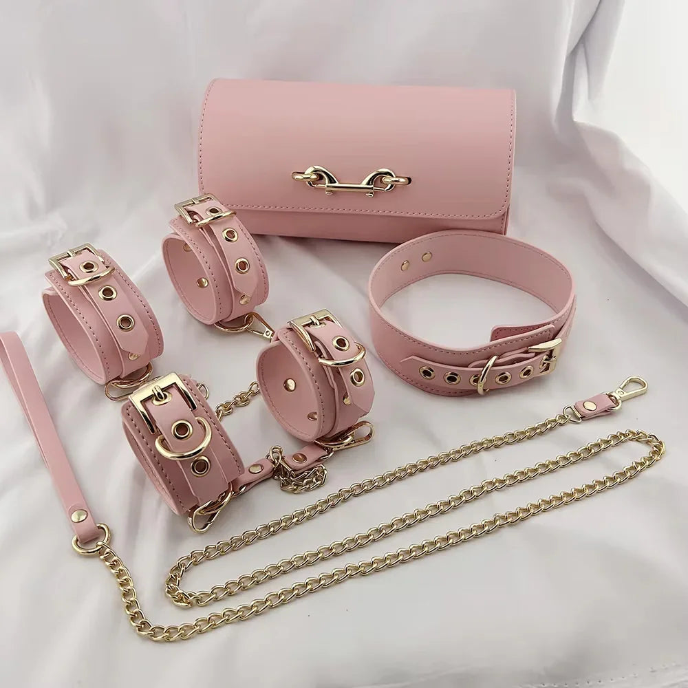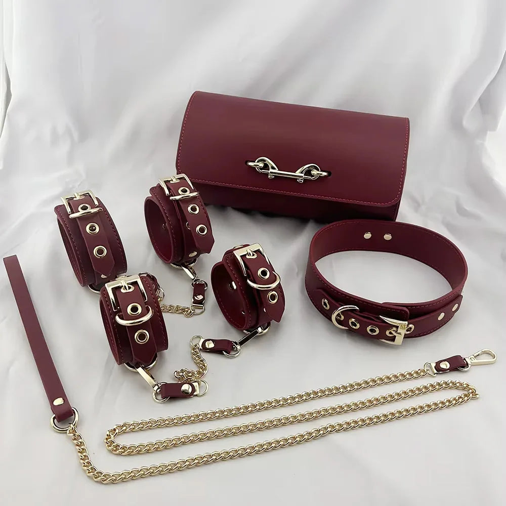 Skórzany zestaw w którego skład wchodzą dwie pary kajdanek z odpinanymi łańcuchami, obroża z odpinanym łańcuchem oraz super jakości skórzane etui. Ten zestaw to świetny wybór dla każdego miłośnika niegrzecznych zabaw. Kilkupoziomowa regulacja sprawi, że produkt będzie nadawał się na każdy rozmiar nadgarstków, kostek oraz szyi. Dyskretne etui pozwoli zadbać o dodatki, przechowywać je w bezpiecznym miejscu i podróżować z nim kiedy tylko będziecie mieli na to ochotę. Zestaw świetnie dopasuje się do pozostałych produktów z działu akcesoria, na przykład skórzanej maski kota. O waszych zabawach będziecie pamiętać na prawdę długo!
