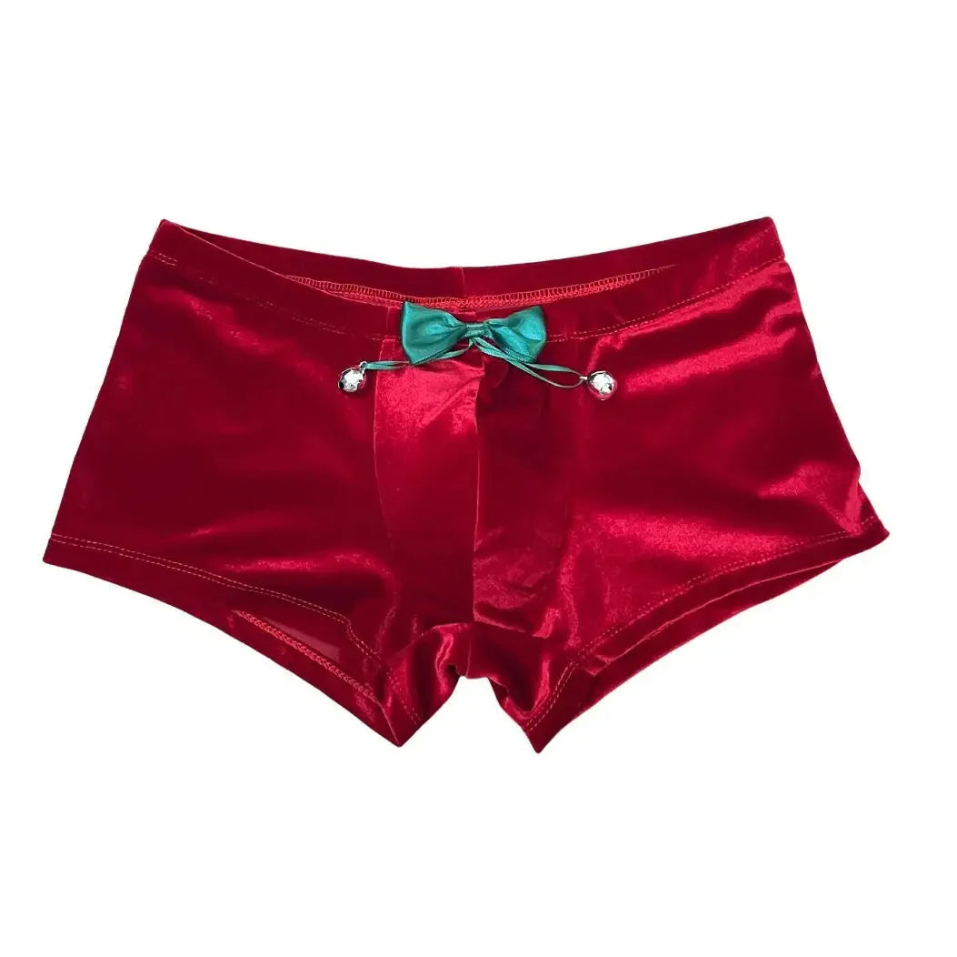Welurowe bokserki w świątecznym stylu, ozdobione zieloną kokardką i małymi dzwoneczkami z przodu. Miękkie i elastyczne zapewniają wygodę, a świąteczny design dodaje im humoru i oryginalności.